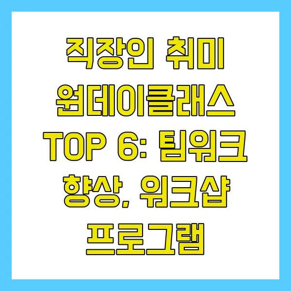 직장인 취미 원데이클래스 TOP 6: 팀워크 향상, 워크샵 프로그램